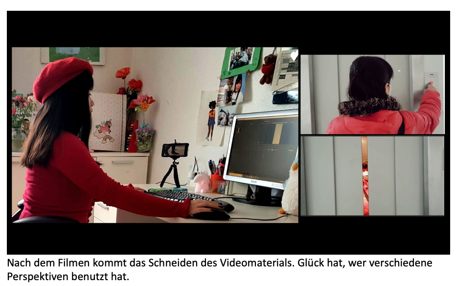 Ebenfalls mit allen wurde ein Text geschrieben, der dann von Jennifer Kleinert eingesprochen wurde. Für die einzelnen Textabschnitte haben die anderen Schüler*innen Videos in Stop-Motion gedreht um die Geschichte zu verbildlichen.
