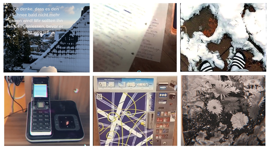 Mit dieser Frage startete die Film AG ihren ersten Mini-Videoauftrag beim Spaziergang um den eigenen Block. Schnee, Plastiktüten, Zigarettenautomaten, Notizen auf Papier, Festnetztelefone? Und was ist mit Garagen?